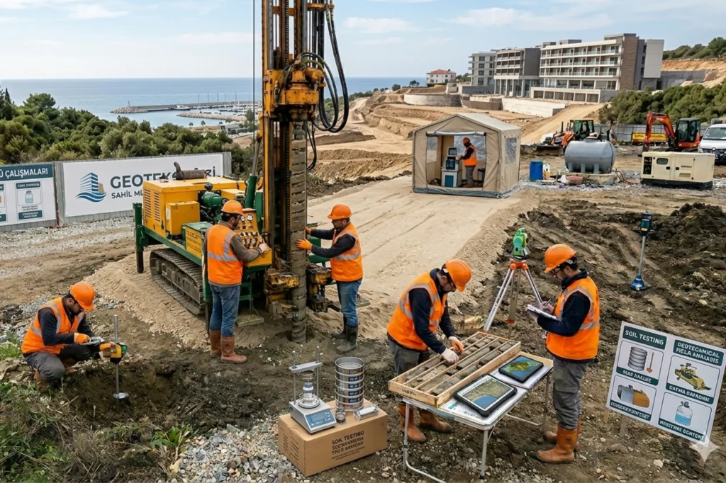 Sondaj çalışmaları, zeminin katman yapısını ve özelliklerini belirlemek için yapılır. Projelendirme sürecine veri sağlar.